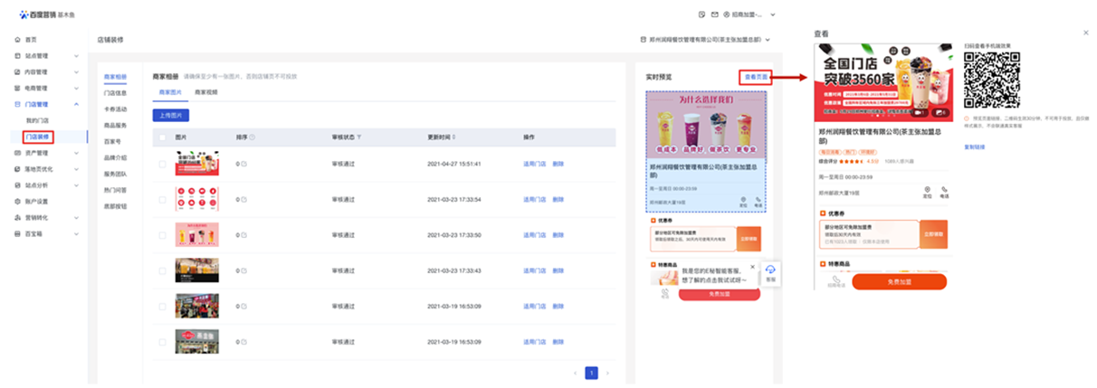 功能入口:基木魚 – 門店管理 - 門店裝修 - 預覽區點擊「查看頁面」- 掃碼或復制鏈接