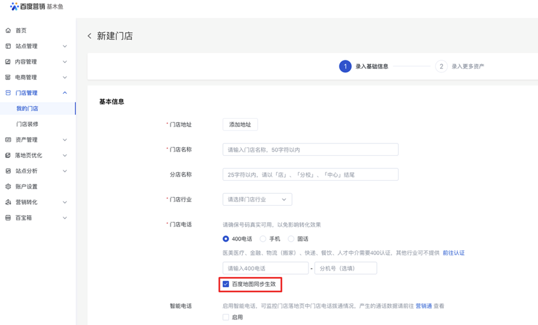- 功能入口:基木魚 – 門店管理 - 新建門店或編輯門店 – 百度地圖同步生效