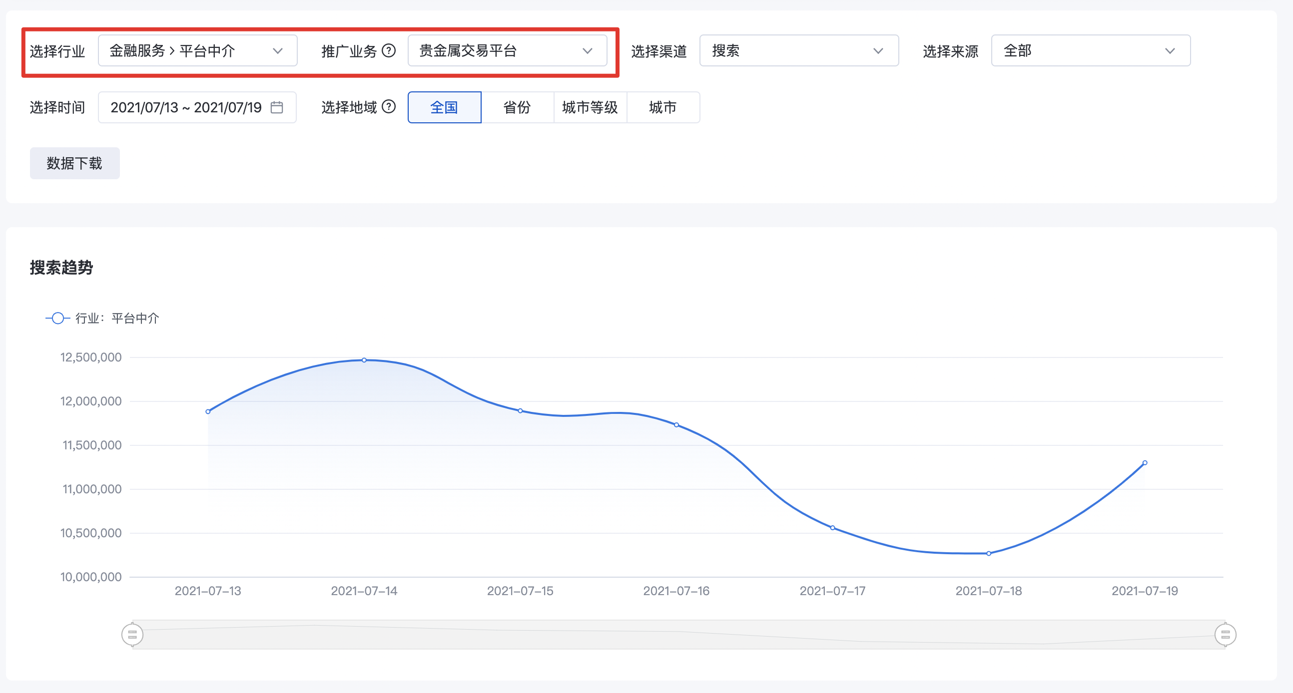 Tip:當選擇某一級行業、二級行業選擇全部時展現一級行業流量