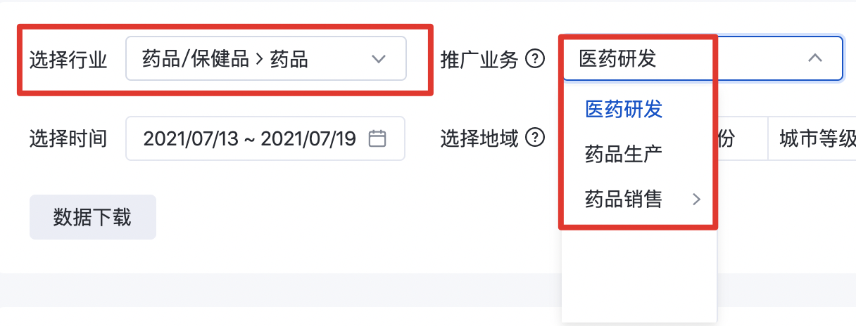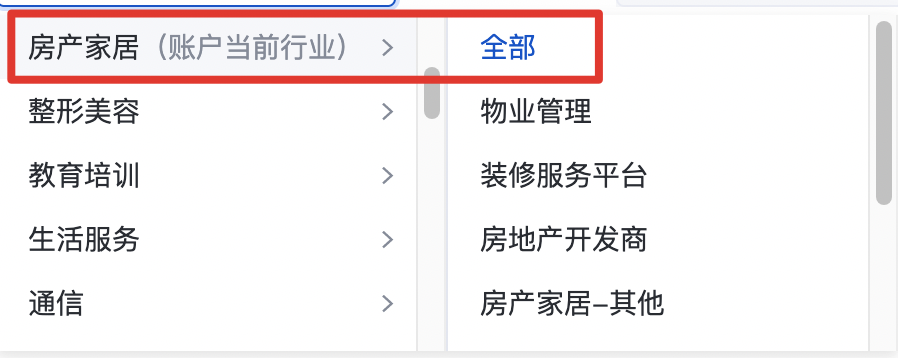 當選擇某一級行業以及其下某二級行業,推廣業務選擇暫無選擇時展現二級行業流量