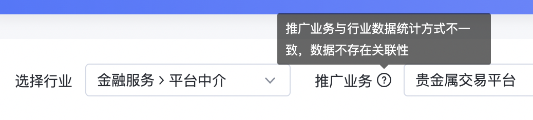 部分行業推廣業務無暫無選擇選項,表示無法查看二級行業流量
