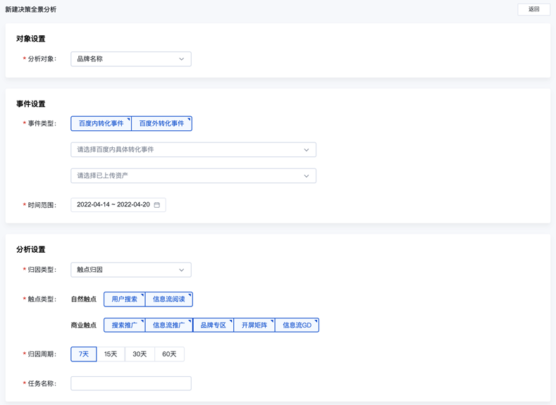支持百度內(nèi)/百度外的用戶決策行為分析;百度外決策數(shù)據(jù),可通過【品牌數(shù)據(jù)資產(chǎn)-資產(chǎn)管理】上傳錄入;