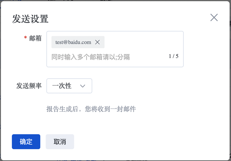 可輸入最多5個(gè)郵箱,輸入完成后按回車確認(rèn);同時(shí)可設(shè)置發(fā)送頻率為一次性、每天、每周、每月、每季度。