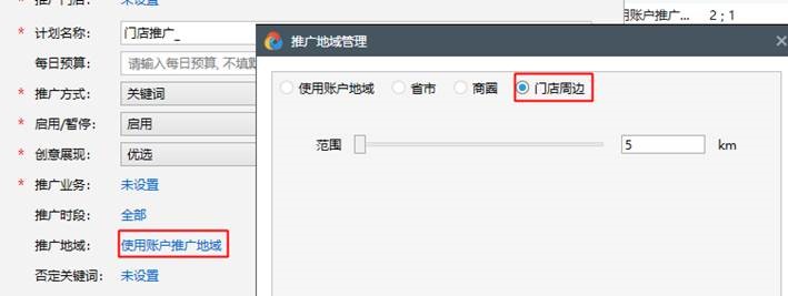 第三步:設置推廣地域,新增商圈和門店周邊
