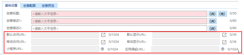 關鍵詞層級:無需填寫訪問url、移動訪問url、小程序url、應用調起url