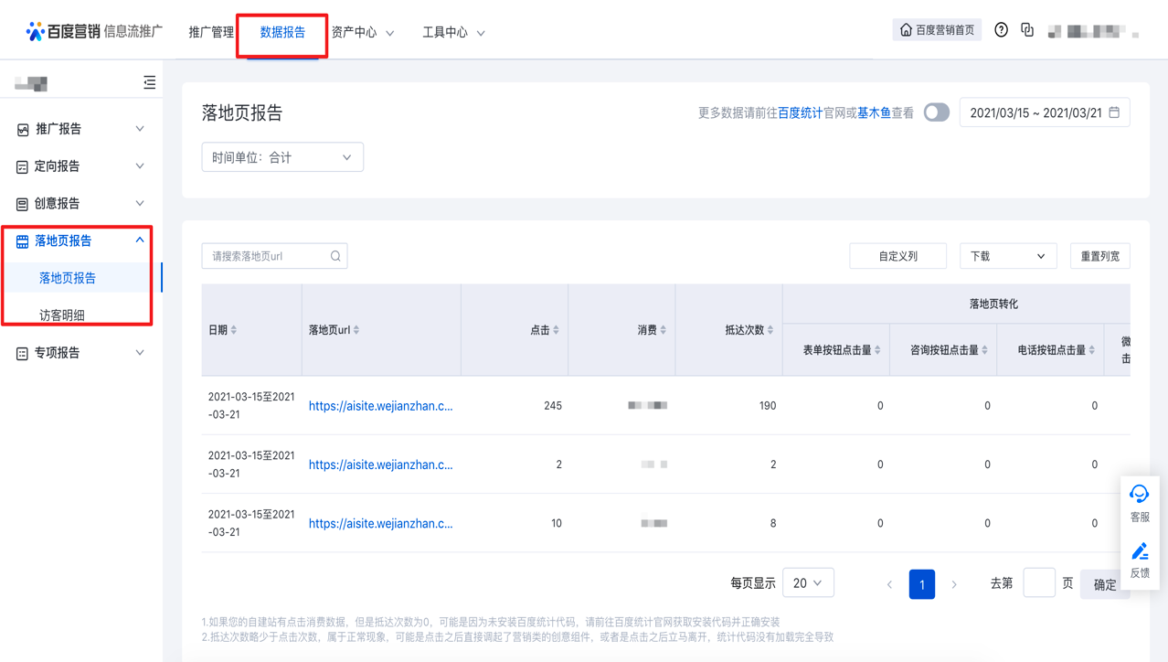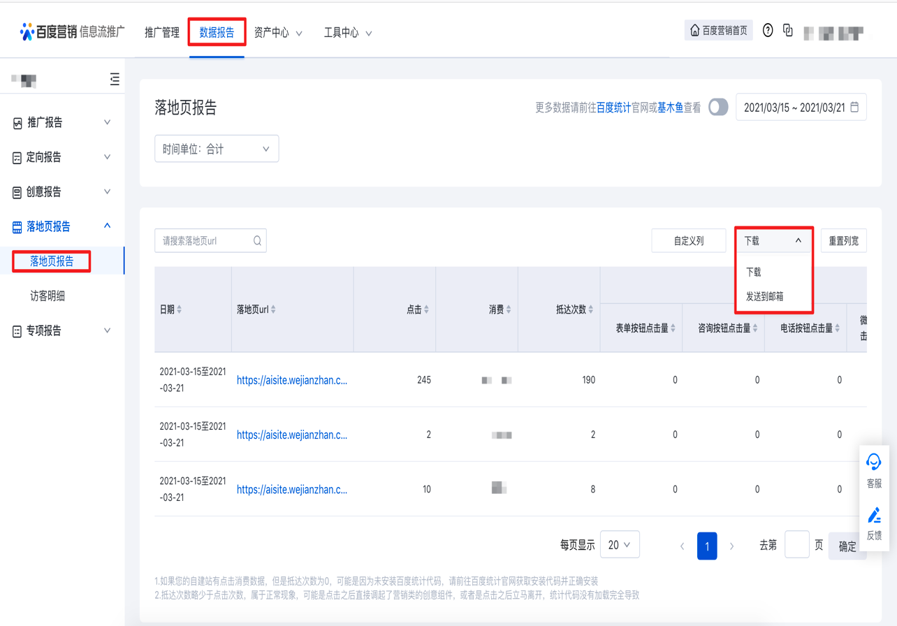 信息流推廣數據報告新增落地頁報告