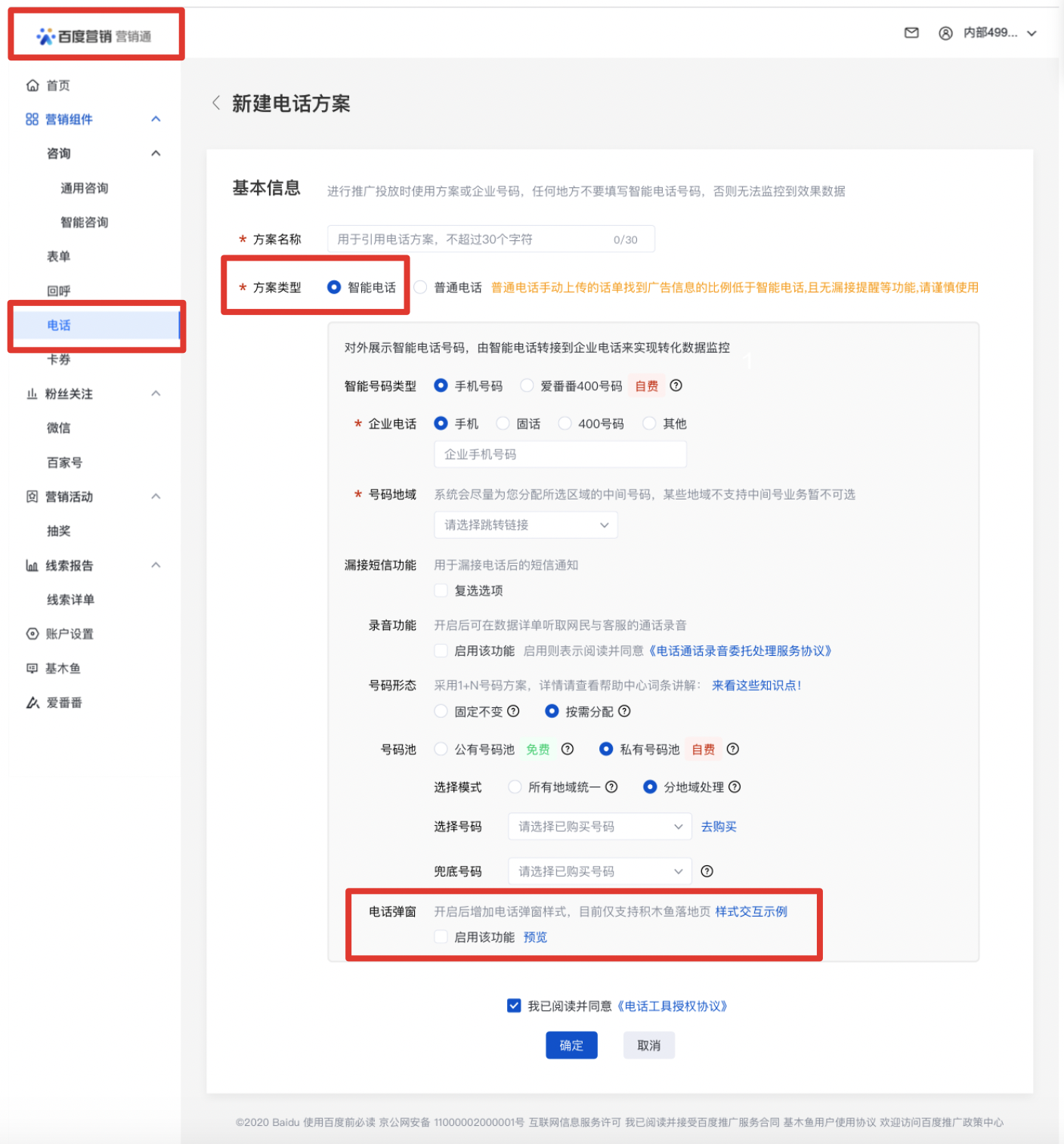 入口:營銷通-電話-智能電話-電話彈窗