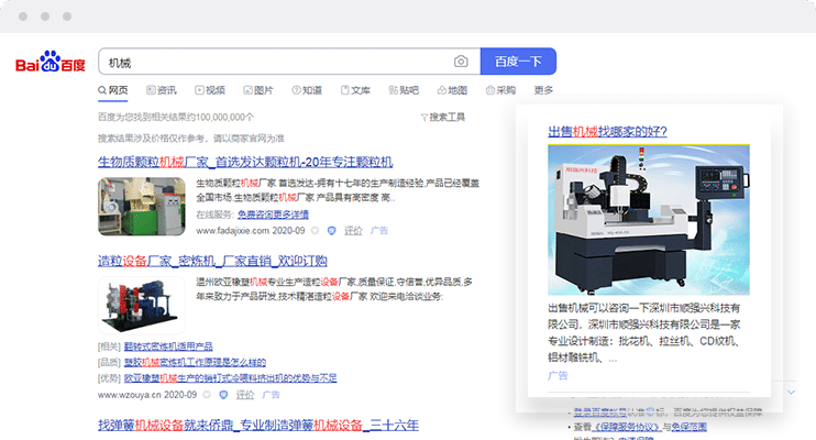 通過通用詞精準匹配,展現(xiàn)在PC網(wǎng)頁右側(cè)的圖文品牌展示類推廣產(chǎn)品